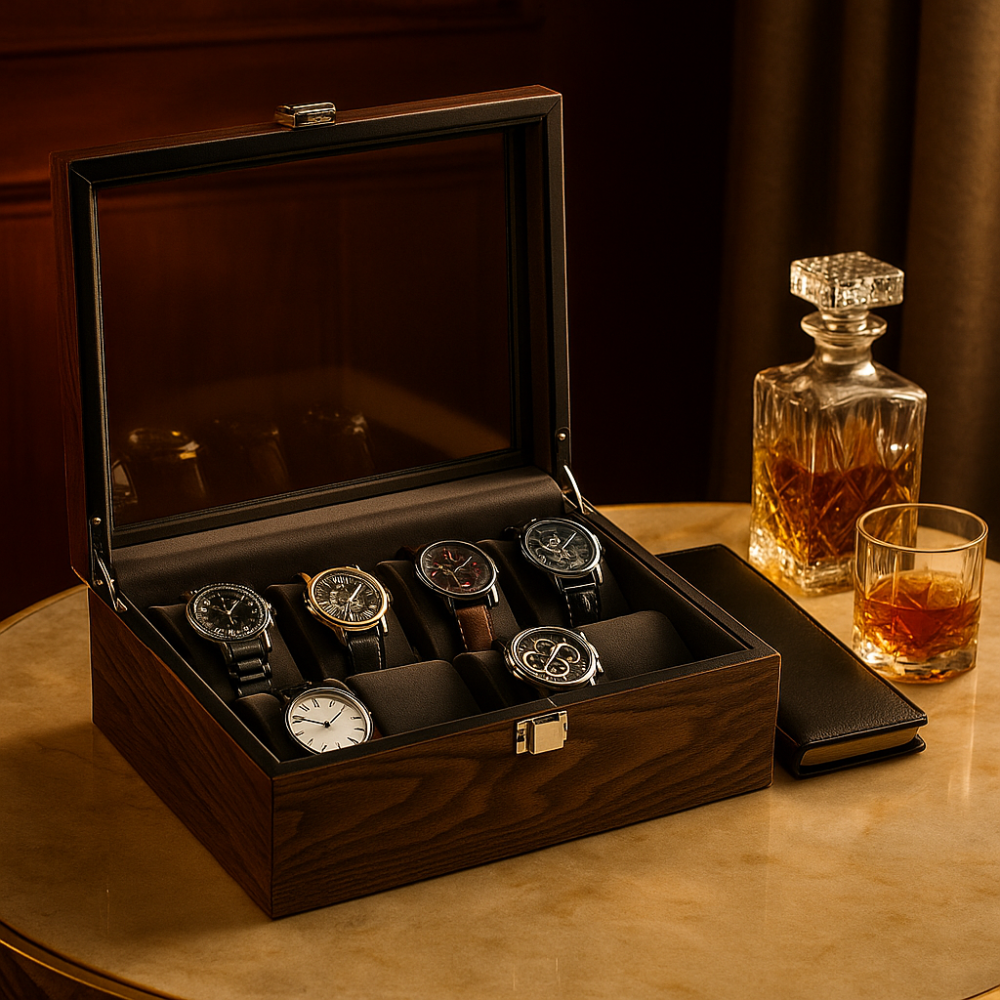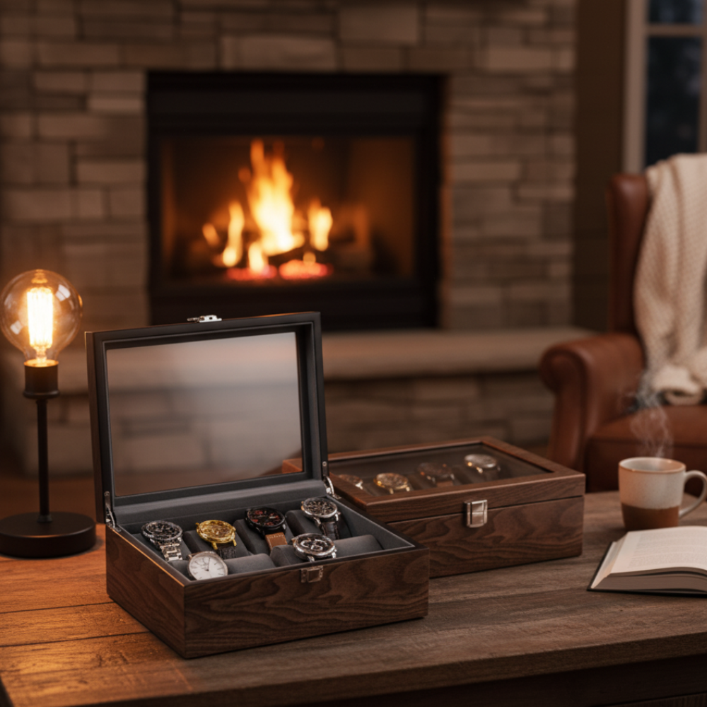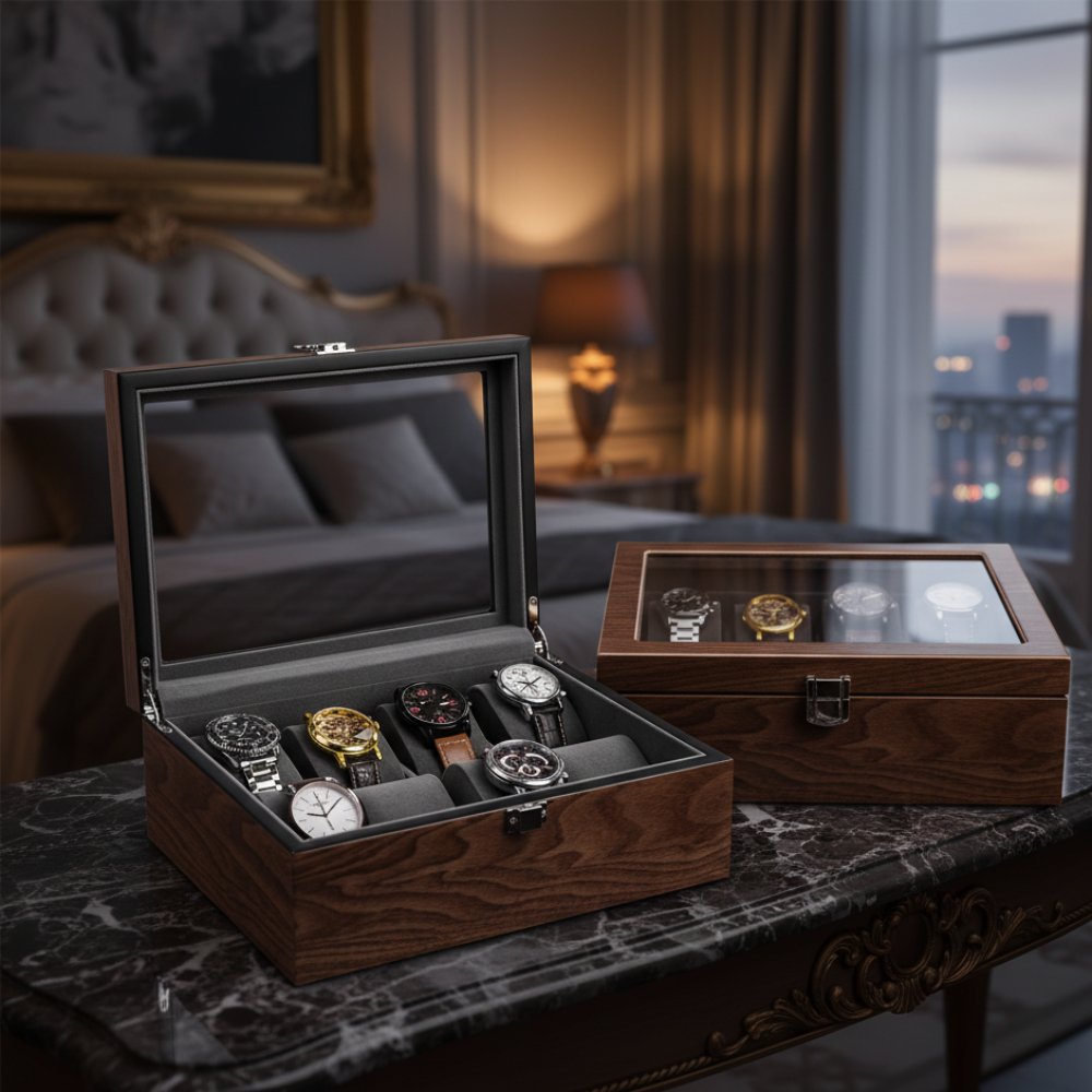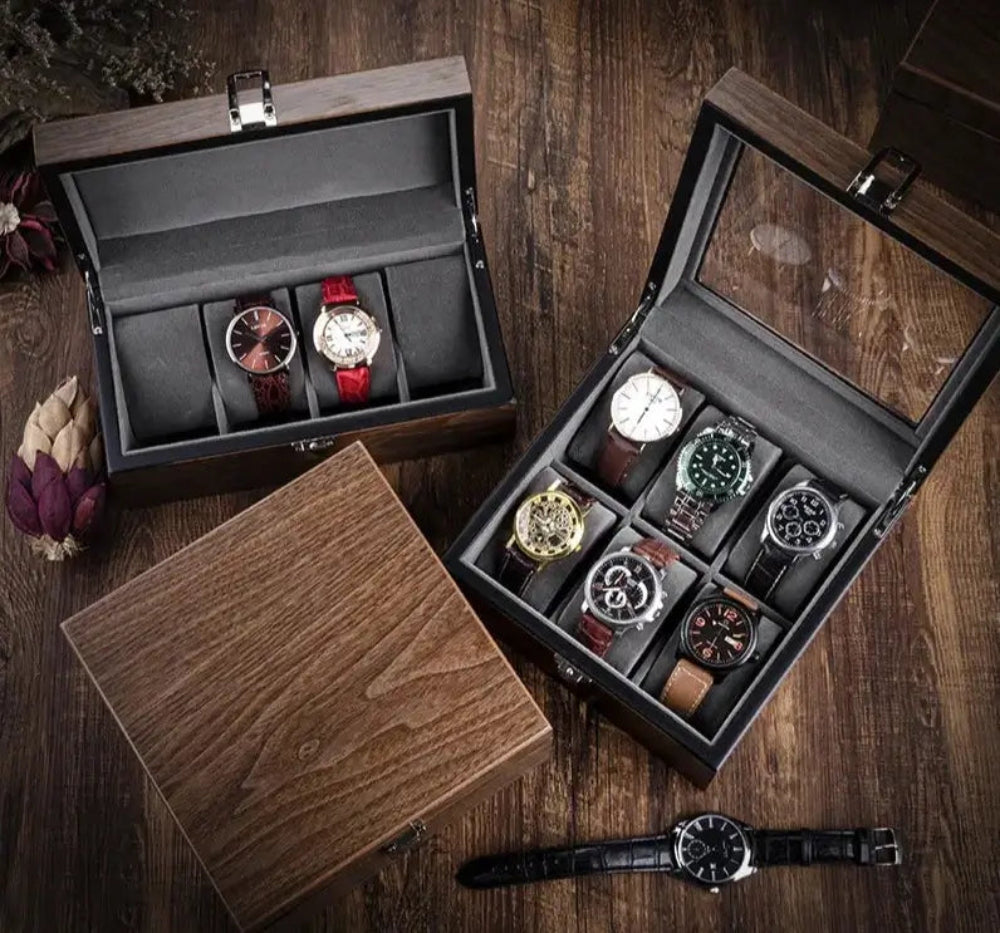 Découvrez l'élégance intemporelle avec notre boîtier de rangement en bois de noyer brun foncé , idéal pour les amateurs d'horlogerie exigeants. Conçu pour accueillir huit montres , il dispose d'un intérieur tapissé de velours pour une protection sans faille contre les rayures et la poussière. Le couvercle en verre permet une vue panoramique sur votre collection, transformant le rangement en une exposition de luxe. Les ferrures métalliques dorées ou chromées ajoutent une touche de raffinement, faisant de cet organisateur bien plus qu'une simple boîte, mais un véritable meuble pour préserver la qualité et l'éclat de votre garde-temps.